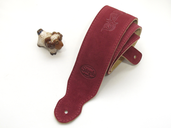 > [新品] Steph)レザーストラップ BS-1027 スエード/ボルドー ギターストラップ Made in CANADA.