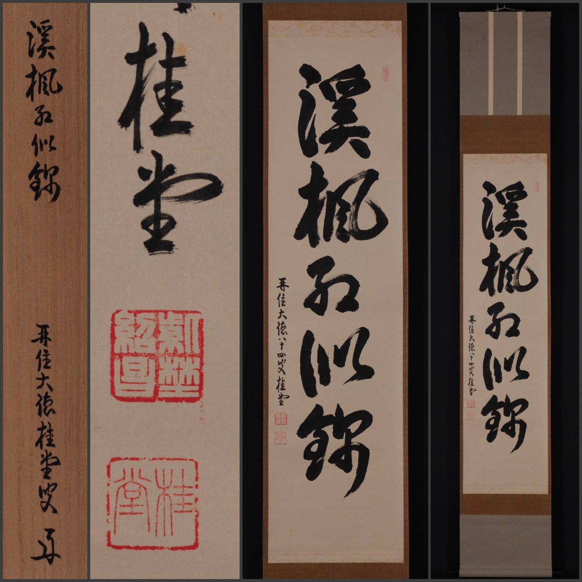 > 【模写】吉】12719 吉口桂堂 書「渓楓紅似錦」 共箱 臨済宗 紫野 大徳寺 塔頭 瑞峯院長老仏教 茶掛け 茶道具 禅語 掛軸 掛け軸 骨董品