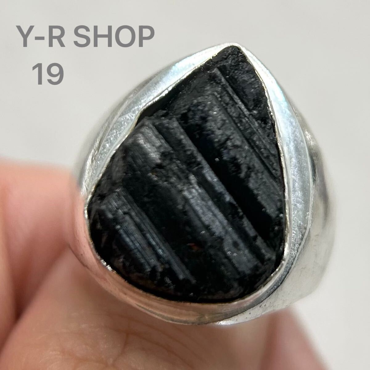 > 天然石★19号★ブラックトルマリン のシルバーボリュームリング★レディースメンズ指輪シルバー 925刻印エスニックアジアン雑貨新品Y-RSHOP