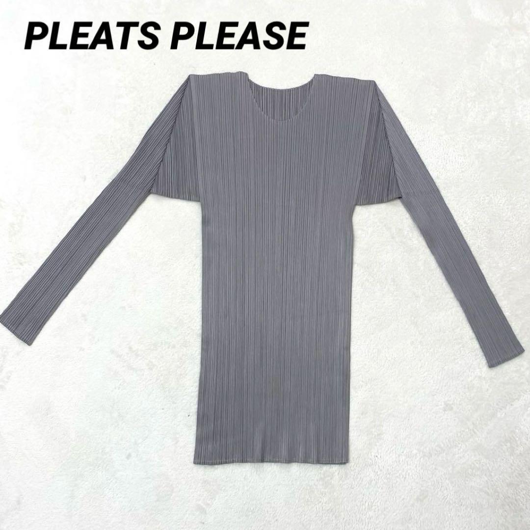 > 【定番人気XXL】プリーツプリーズ イッセイミヤケ PLEATS PLEASE ISSEY MIYAKE 長袖トップス カットソー サイズ5 グレー 光沢 大きいサイズ