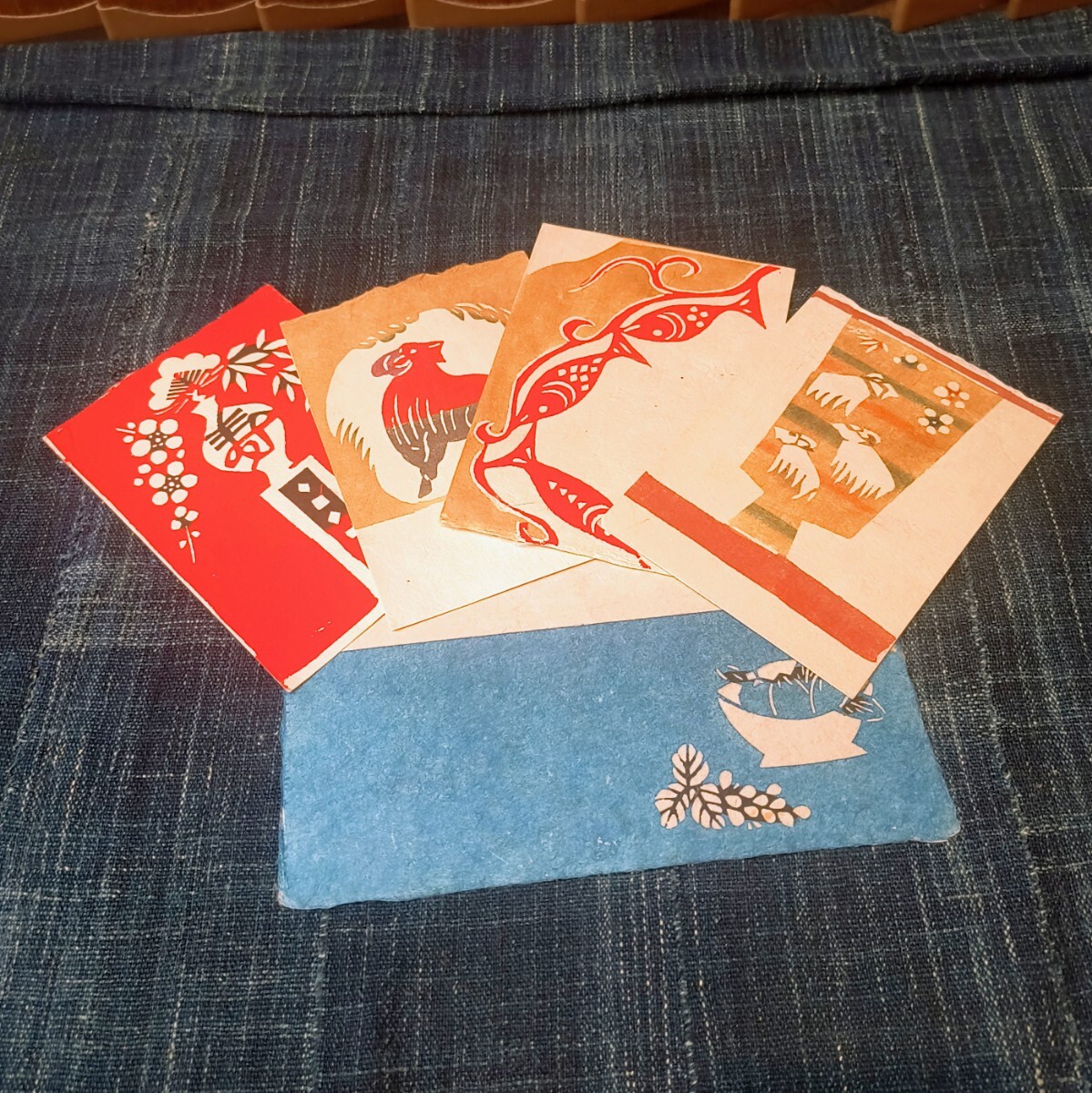 - 芹沢銈介 芹沢染紙研究所 和紙 ポストカード 5枚組 検) 萌木会 昭和 当時物 絵葉書 絵はがき 民芸 古道具 骨董 型絵染め 型染