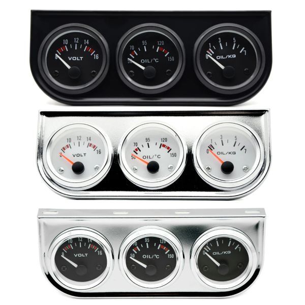 - お買得◆トリプルゲージキット 3in1 52mm クローム 1/8NPT 水温計 電圧計 油圧計 温度 & 圧力センサー付き クローム