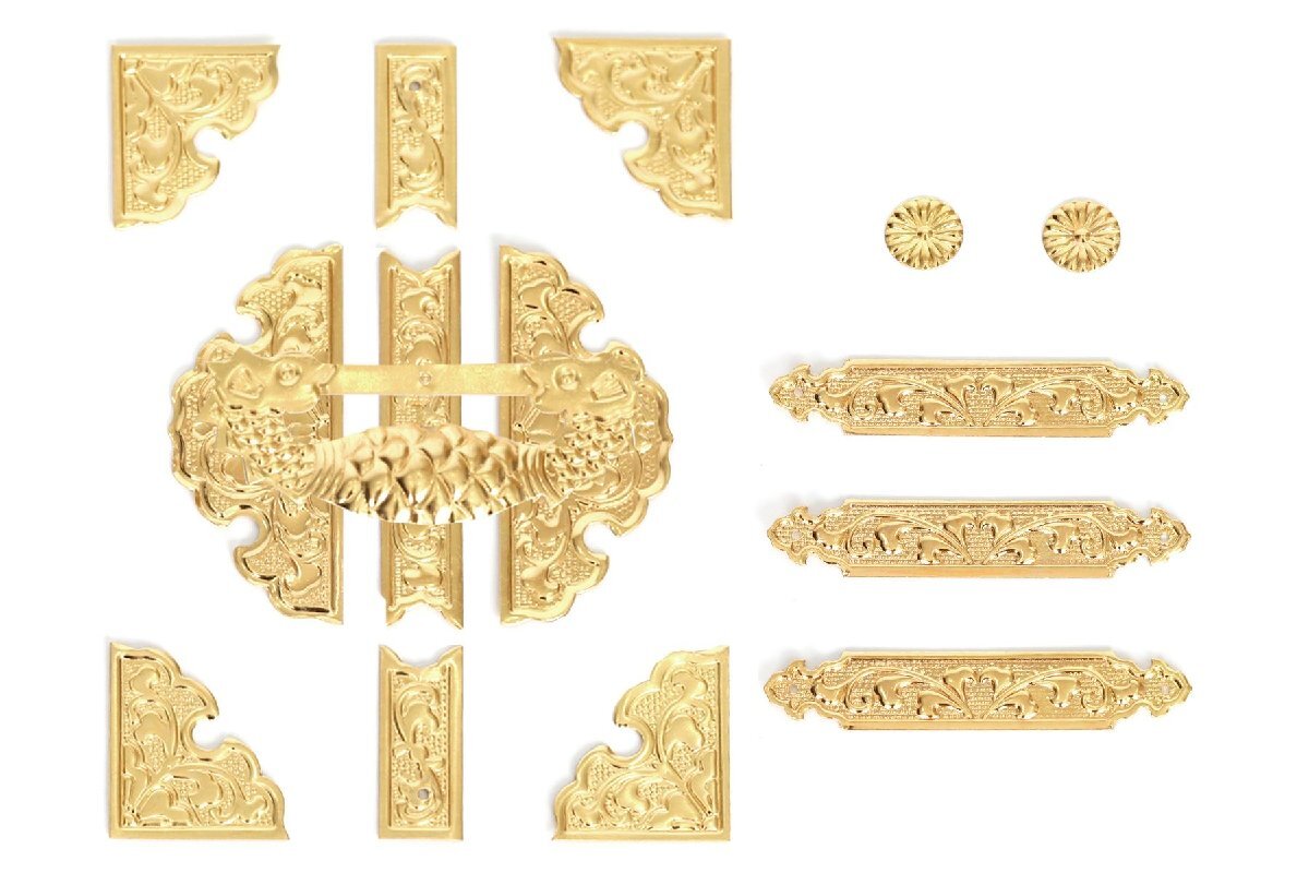 - 神棚 神具 錺金具 真鍮製 扉金具 一式 調度品 袖付 中神明 大神明 大々神明 に