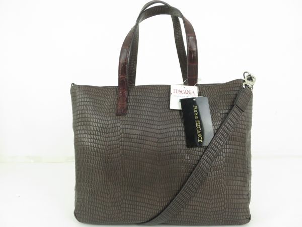 - Ma´am ELEGANCE マームエレガンス レザー×クロコダイル 2WAY トートバッグ ショルダーバッグ 本革 リザード型押し お洒落な ブラウン