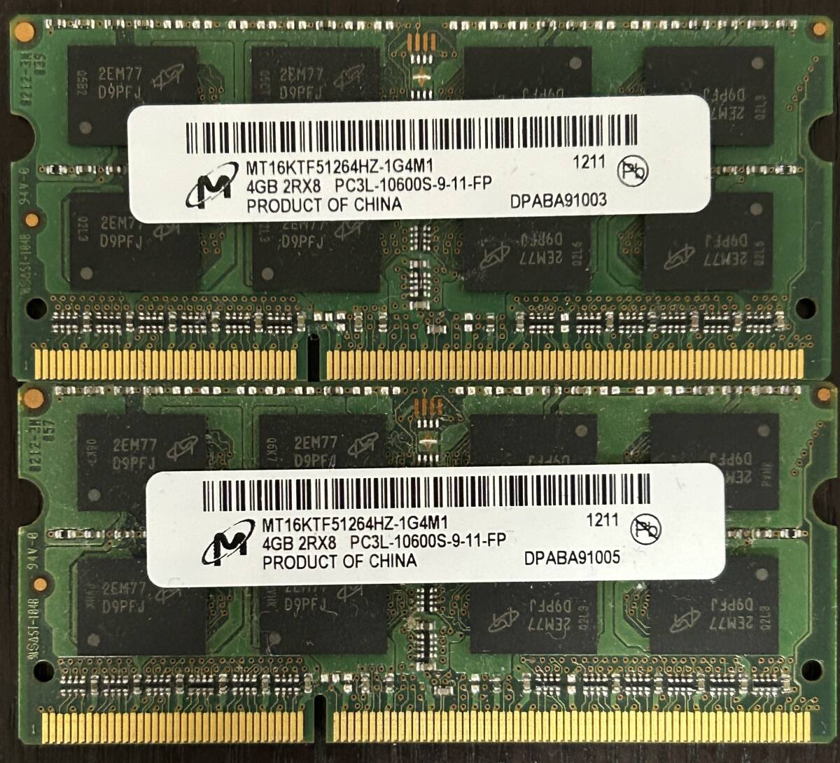 > 即決 動作確認済み Micron マイクロン SO-DIMM 204pin DDR3L PC3L-10600S 4GB×2枚1.35V低電圧対応 1.5V対応 ノートパソコン用 807
