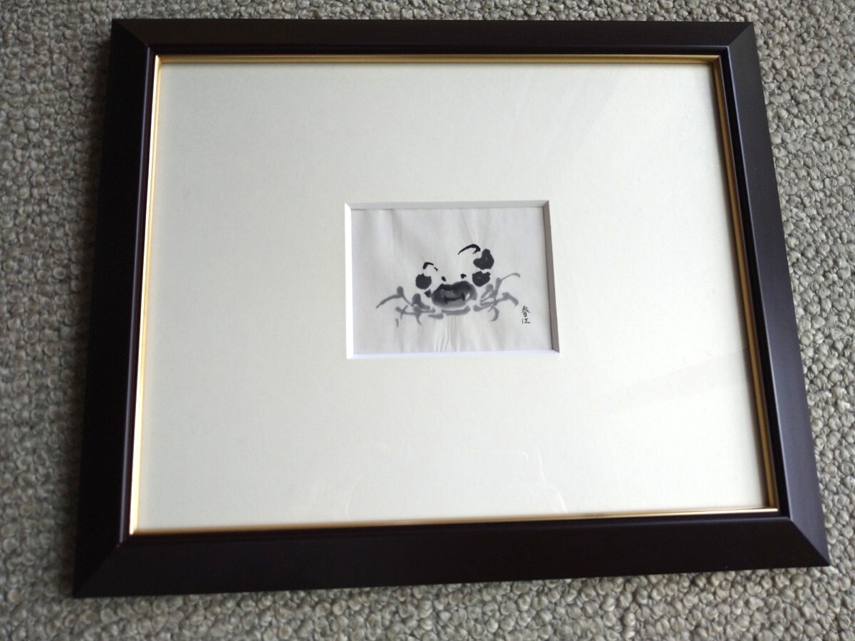 - 【2作セット 額入り】水墨画『蟹』『とんぼ』サイン有り 外箱有り 作者未詳 真作か模写か不明