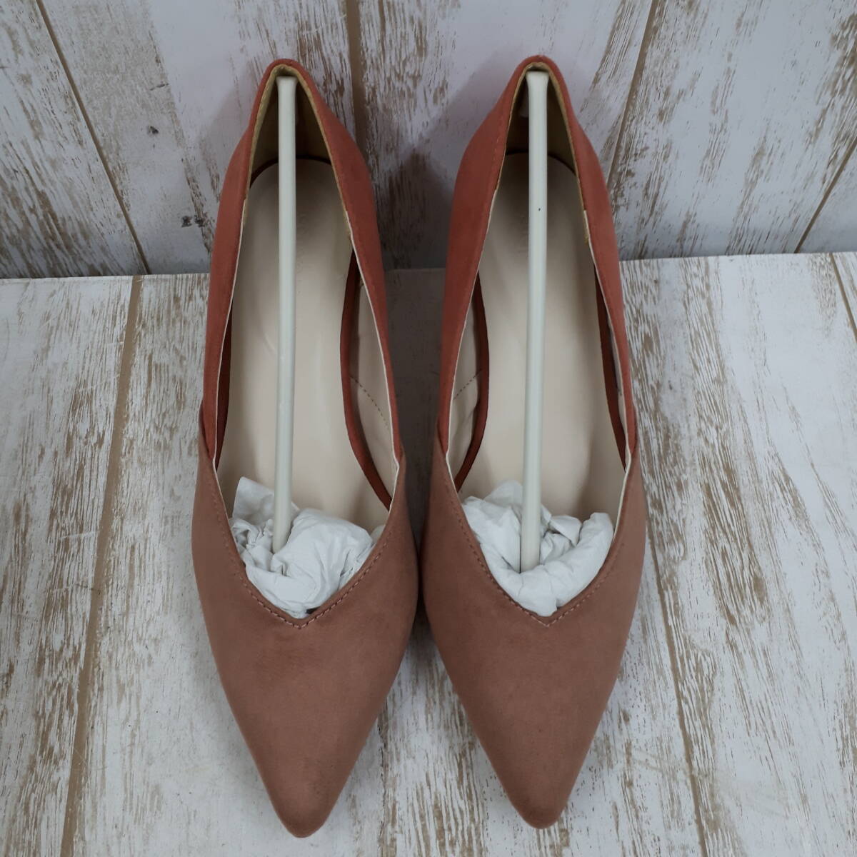 - 靴948-194♪【80】Marvelous マーベラス Vカット パンプス PNK スモークピンク モーブピンク Sサイズ 約23㎝