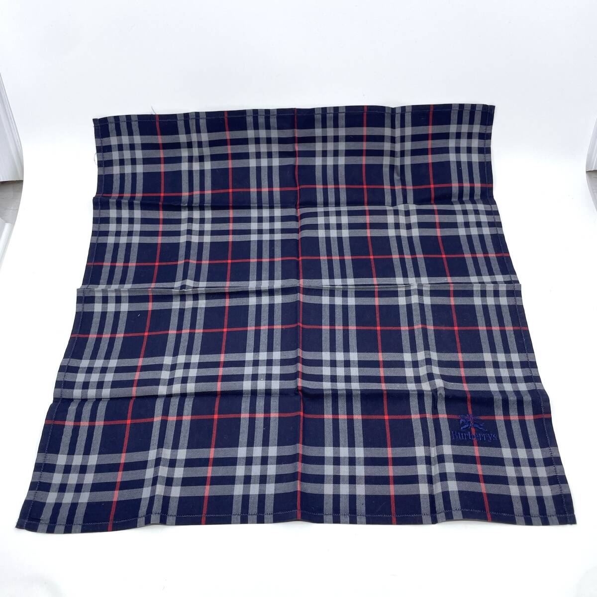 - Burberrys バーバリーズ ハンカチ バンダナ ネイビー×レッド ホースロゴ ノバチェック ロゴ刺繍 総柄 ラグジュアリー エレガント
