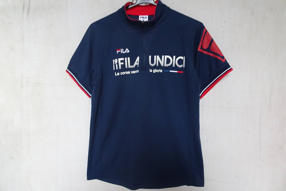 - FILA/フィラ/FL-9C10036PS/半袖プルオーバー/速乾性/ハーフジップ/ロゴプリント/スポーツ/紺/ネイビー/Sサイズ(8/7R7)