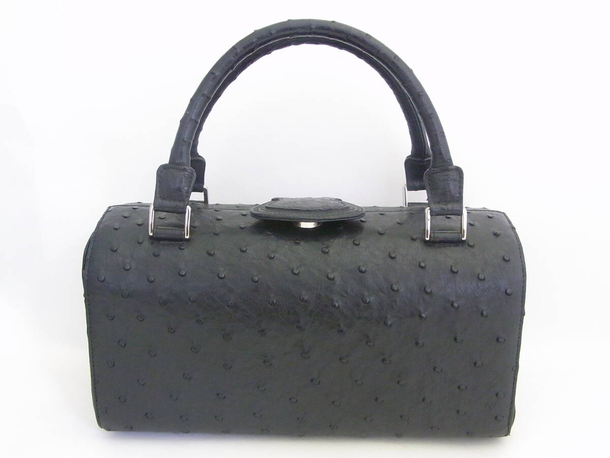 - 【中古品状態「良い」】オーストリッチ ハンドバッグ カラー:ブラック 中2層式 MADE IN JAPAN