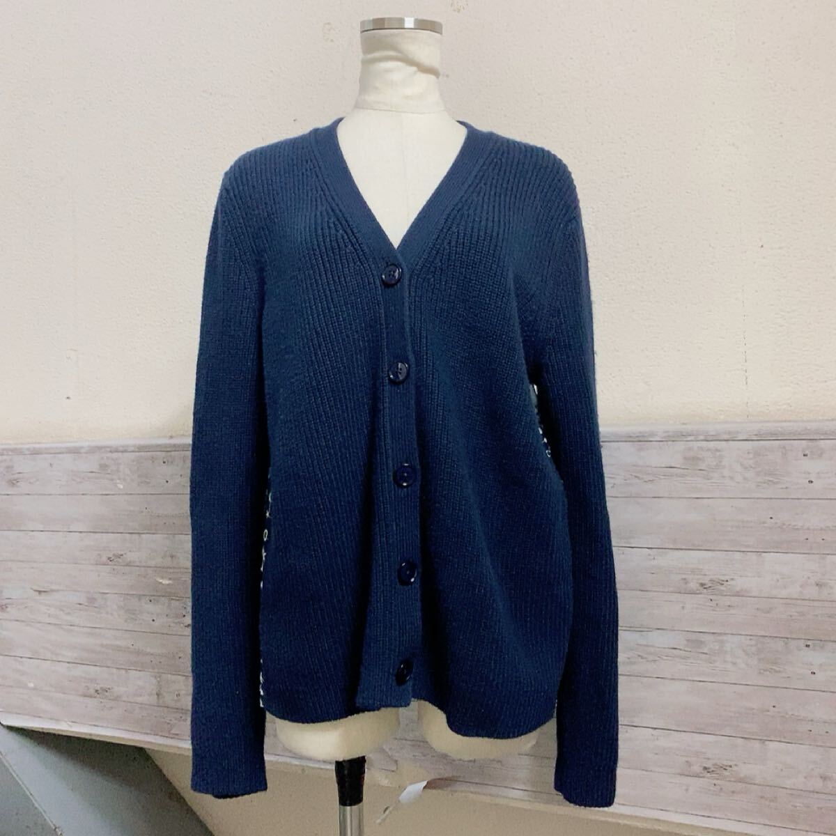 - ♪トミーヒルフィガー ニットカーディガン/紺色/シースルー/刺繍/TOMMY HILFIGER