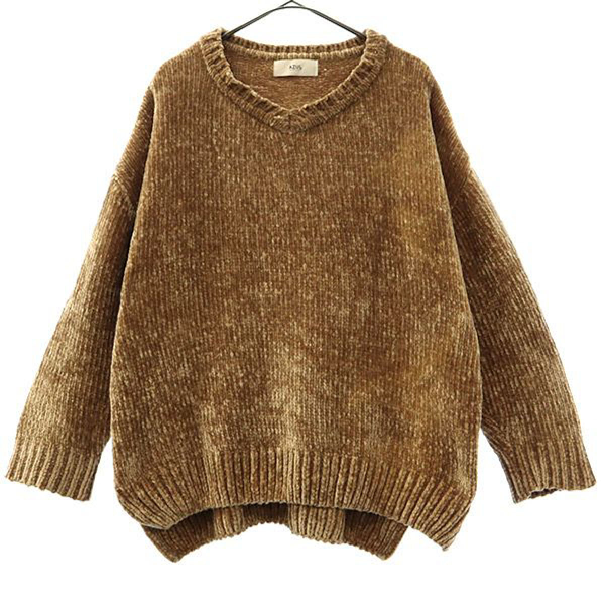 AZZURE アズール 長袖 Vネック セーター S ブラウン ニット レディース拍卖