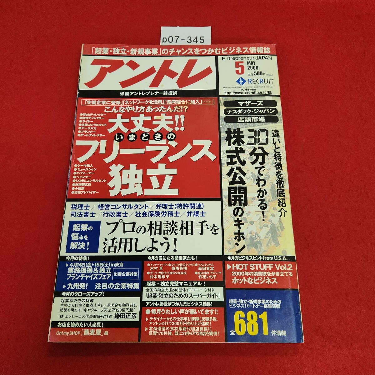 - p07-345 アントレ 2000年5月号 こんなやり方あったんだ!? 大丈夫!! RECRUIT