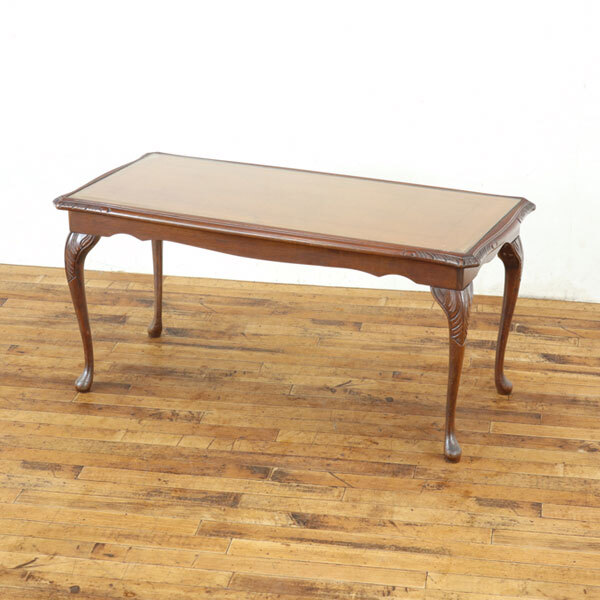 - コーヒーテーブル ガラストップ レザー独特の雰囲気 天板フチの装飾も印象的 英国家具らしいかっこよさ 猫脚 ローテーブル イギリス 80234