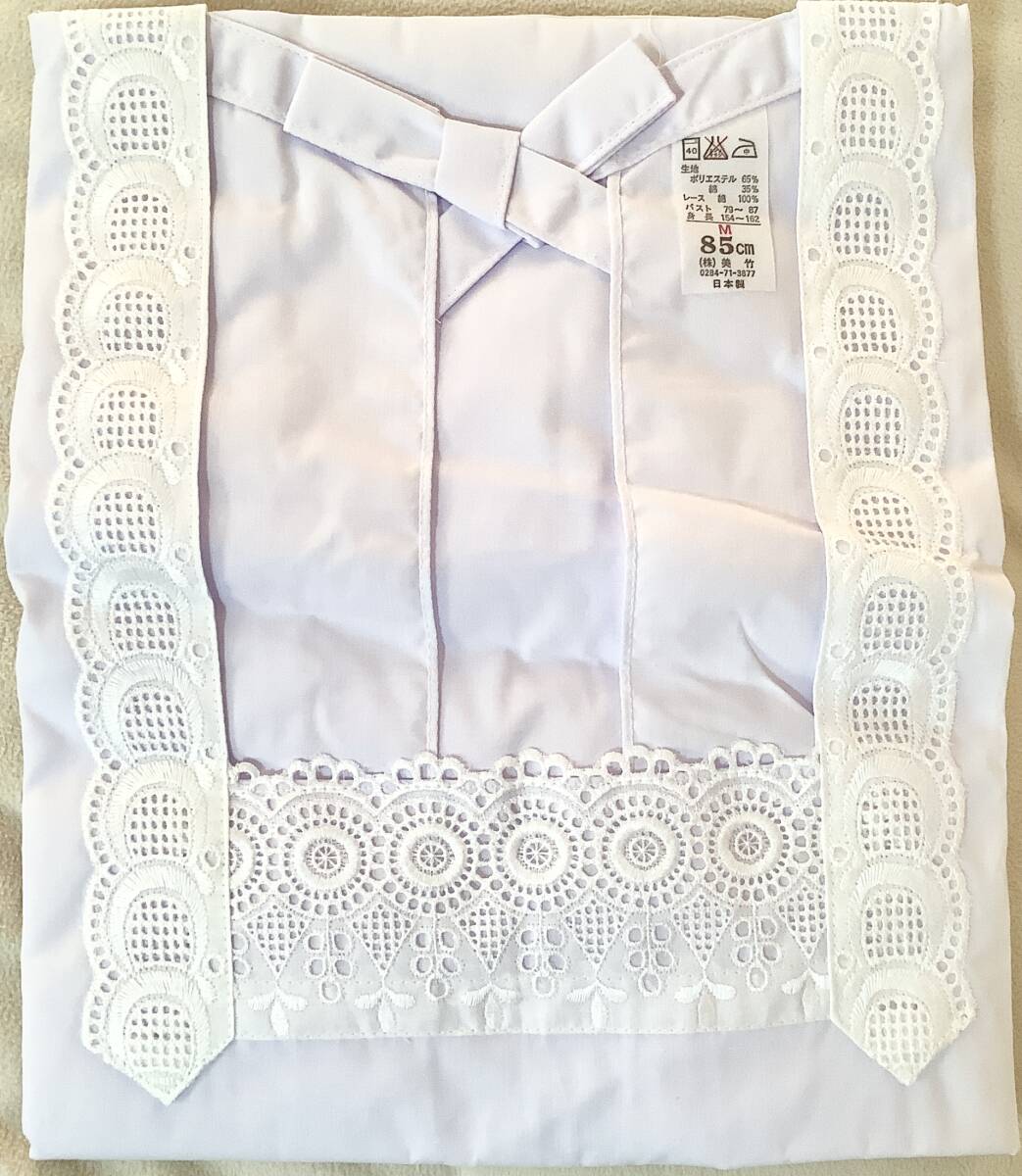 - 新品未使用!和装かっぽう着 割烹着 フリル付裾丸 85cm ホワイト/送230〜