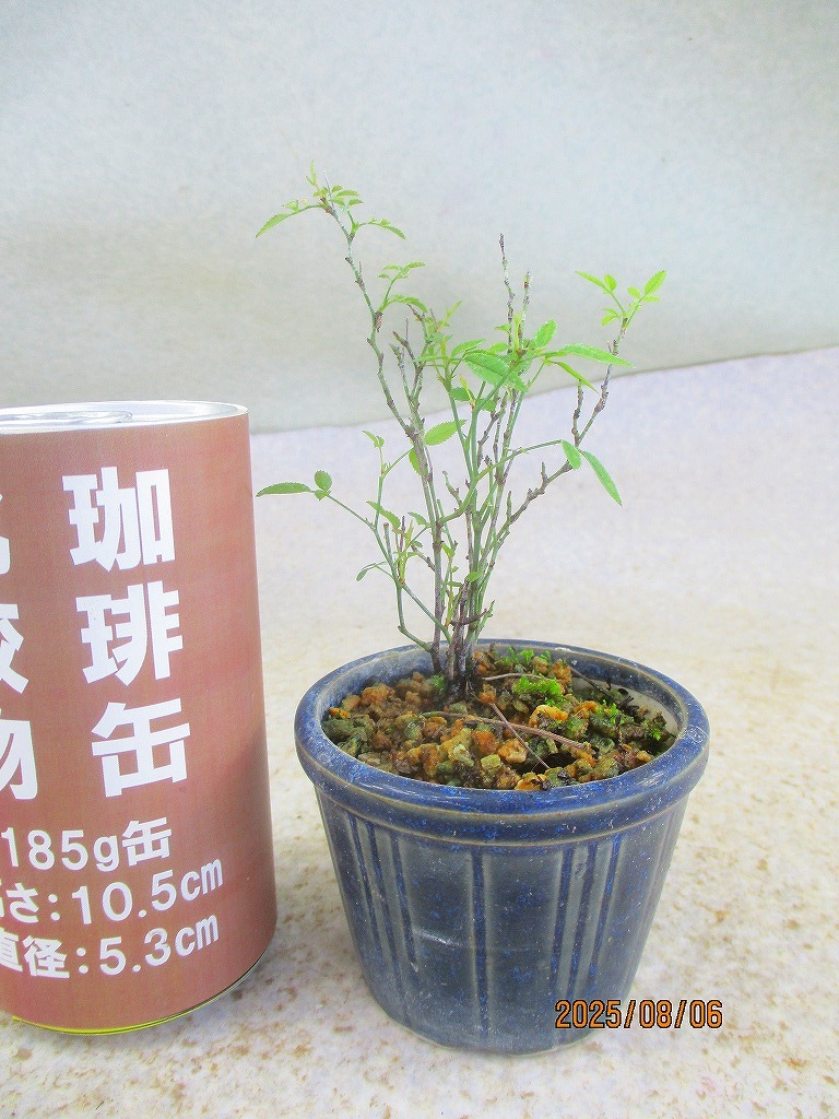 - [緑の市場] ミニ盆栽 野茨 (8231瑠璃釉丸鉢)全高:16㎝【小型送料】*同梱包対応「まとめて取引」厳守*60サイズ送料明記