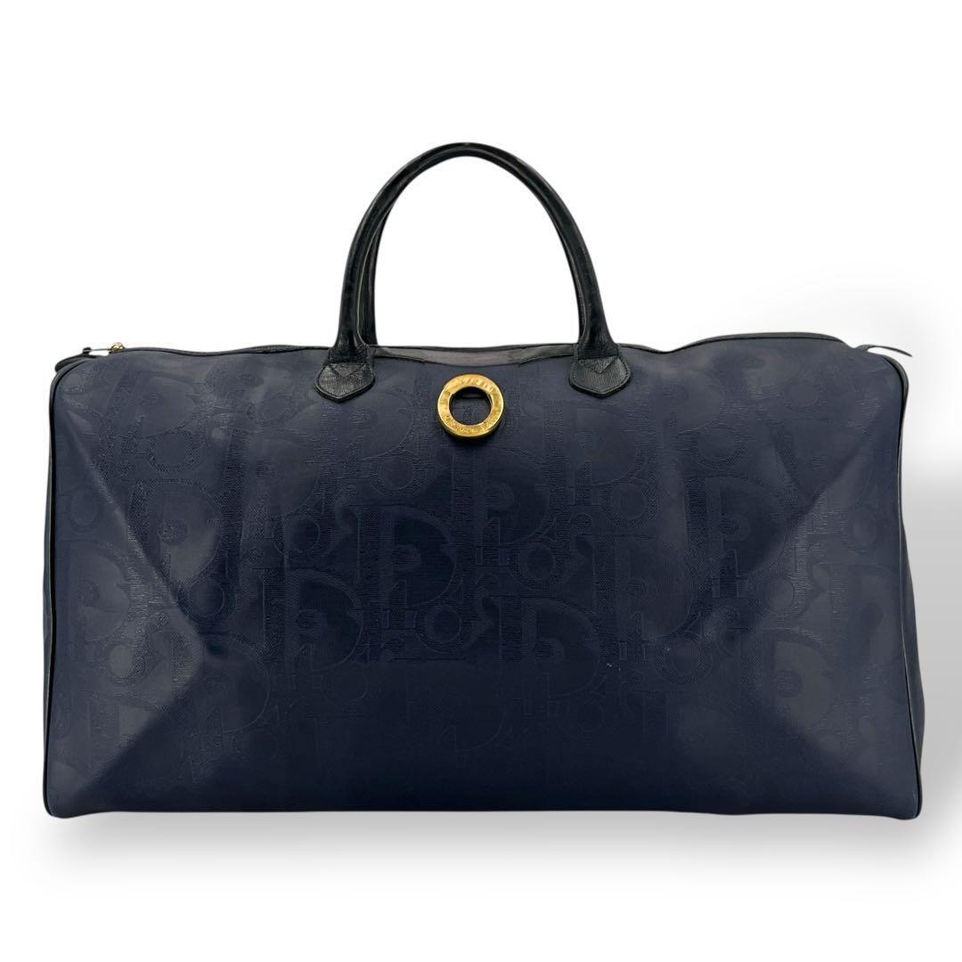 > Christian Dior ボストンバッグ トロッター ゴールド金具 ネイビー PVCレザー 総柄 大容量 紺 トラベルバッグ 旅行カバン