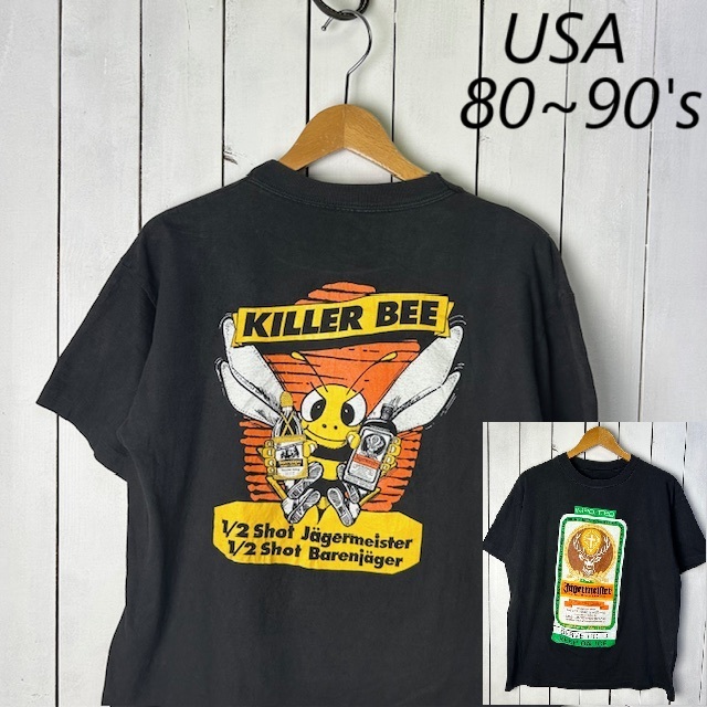 > T●203 USA古着 80s~90s 両面プリント Tシャツ M~L 黒 オールド ヴィンテージ アメリカ古着 シングルステッチ フェード