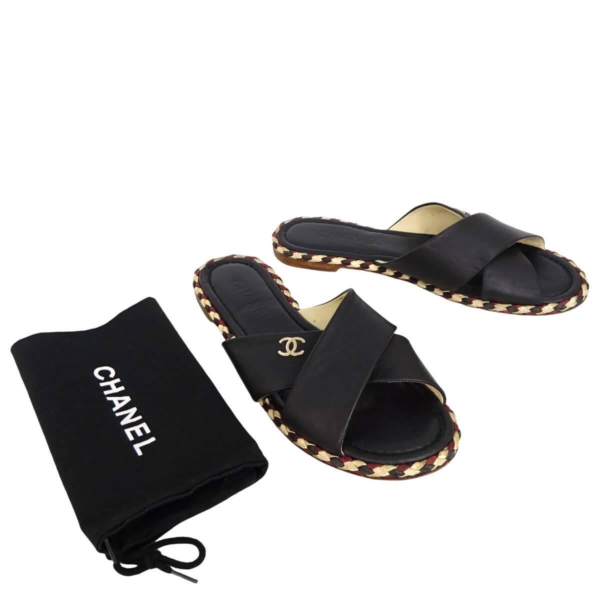 - 本物■シャネル■ココマーク ブラックレザー フラットサンダル/イタリア製/39C