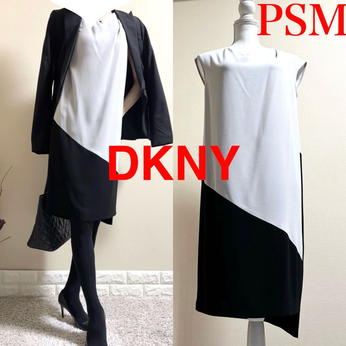 - 美品!DKNY ダナキャラン アシンメトリー 配色 ワンピース P SM 黒グレー