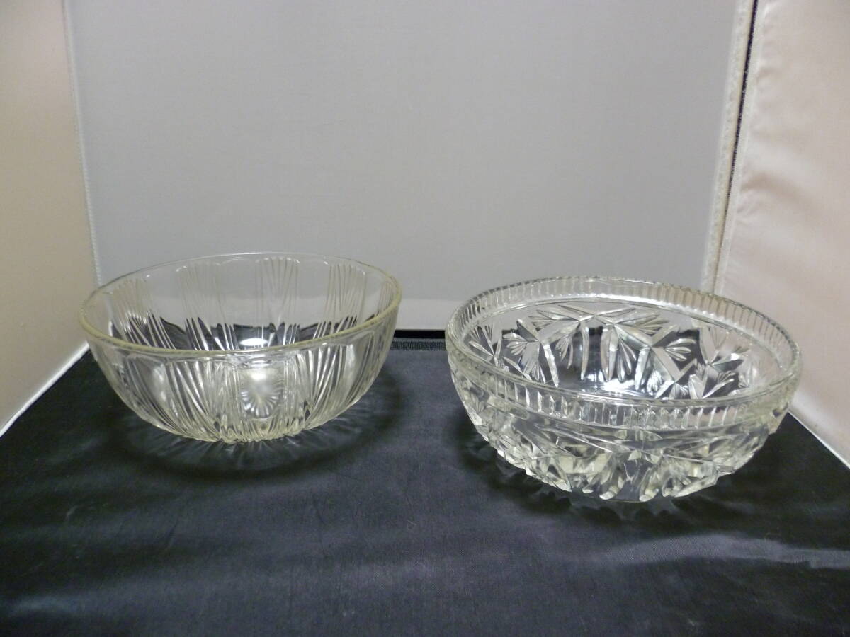 - アンティーク 昭和レトロ プレスガラス カット柄 2種類 サラダボール ガラス鉢 2客