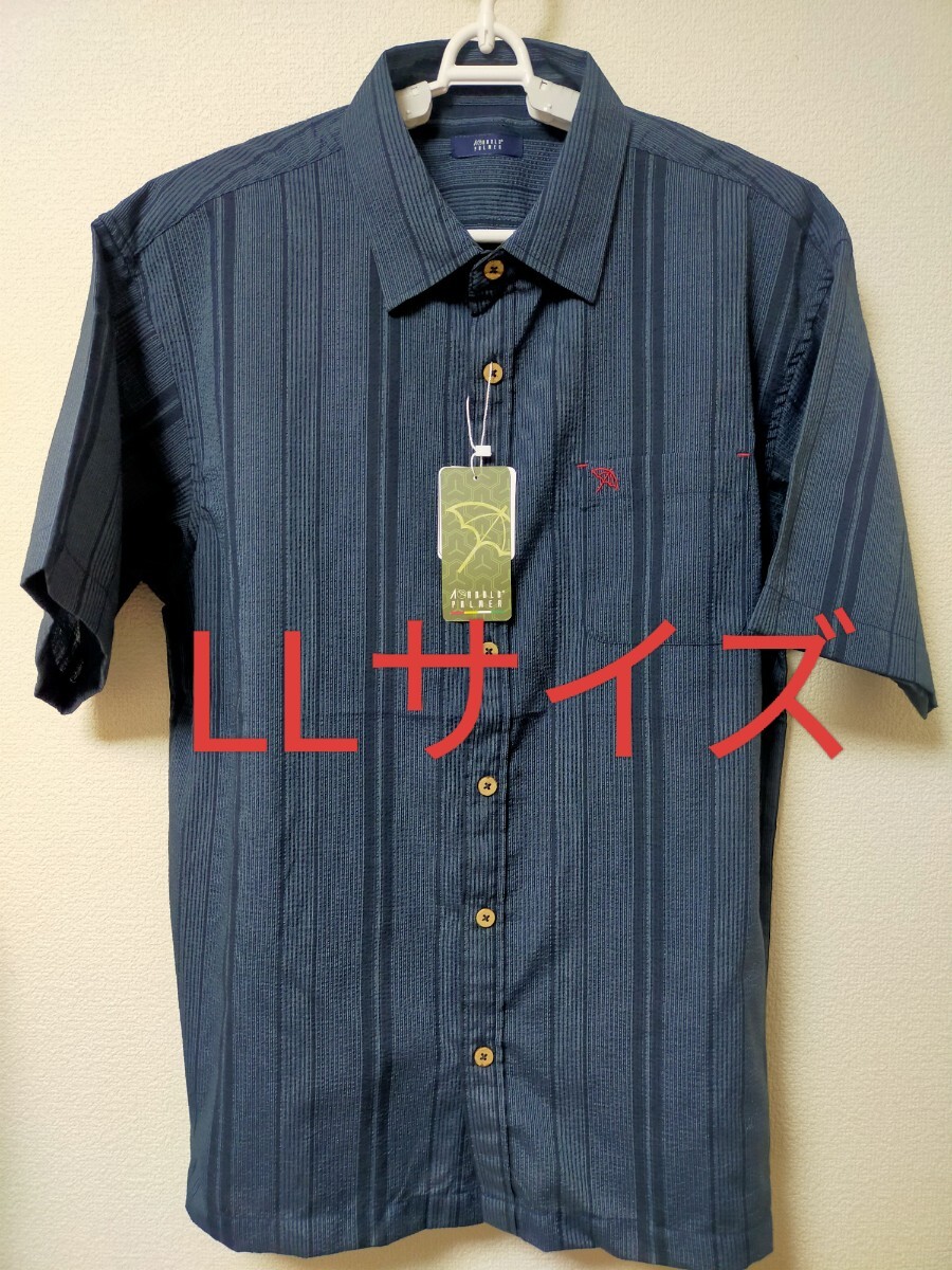 - LLサイズ!送料無料!即決!Arnold Palmer アーノルドパーマー 半袖 ポケット付き シャツ 紺色【吸水速乾】メンズ 紳士用 総柄 和柄