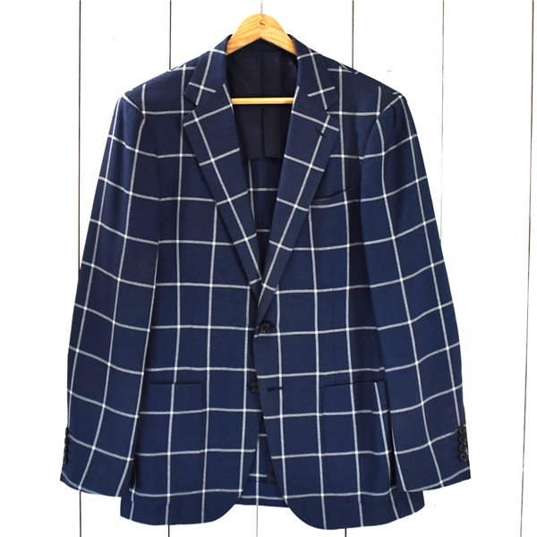2つボタンシングル。パッチポケット。センターベント。袖口4つボタン。開き見せ。背抜き。ネーム刺繍なし。この機会に是非!