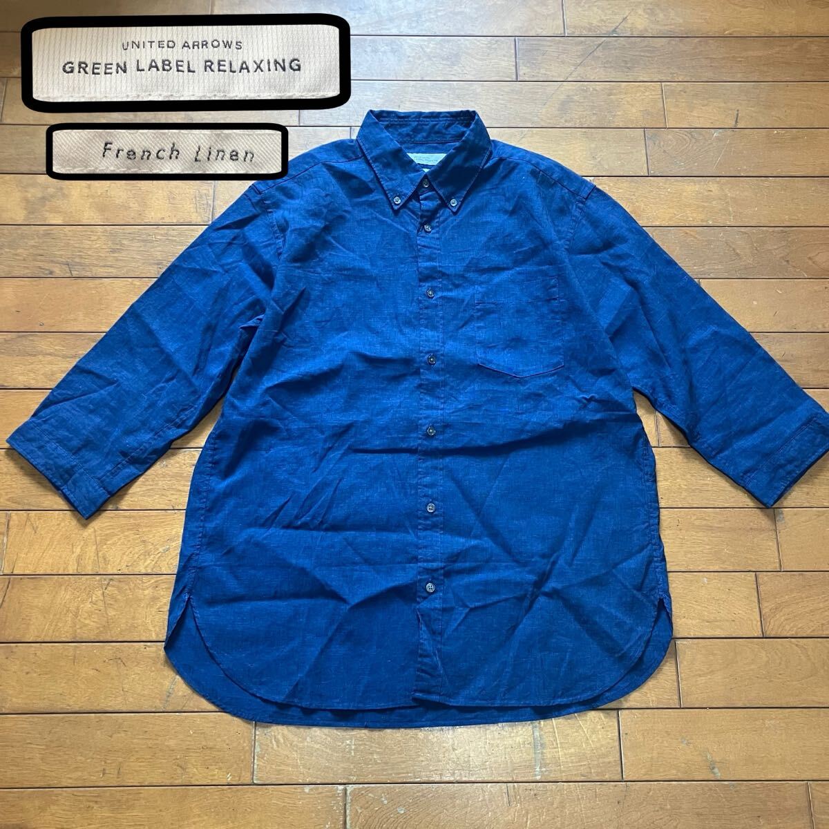 > ☆【 UNITED ARROWS 】★ グリーンレーベル フレンチリネン 五分袖BDシャツ★サイズL