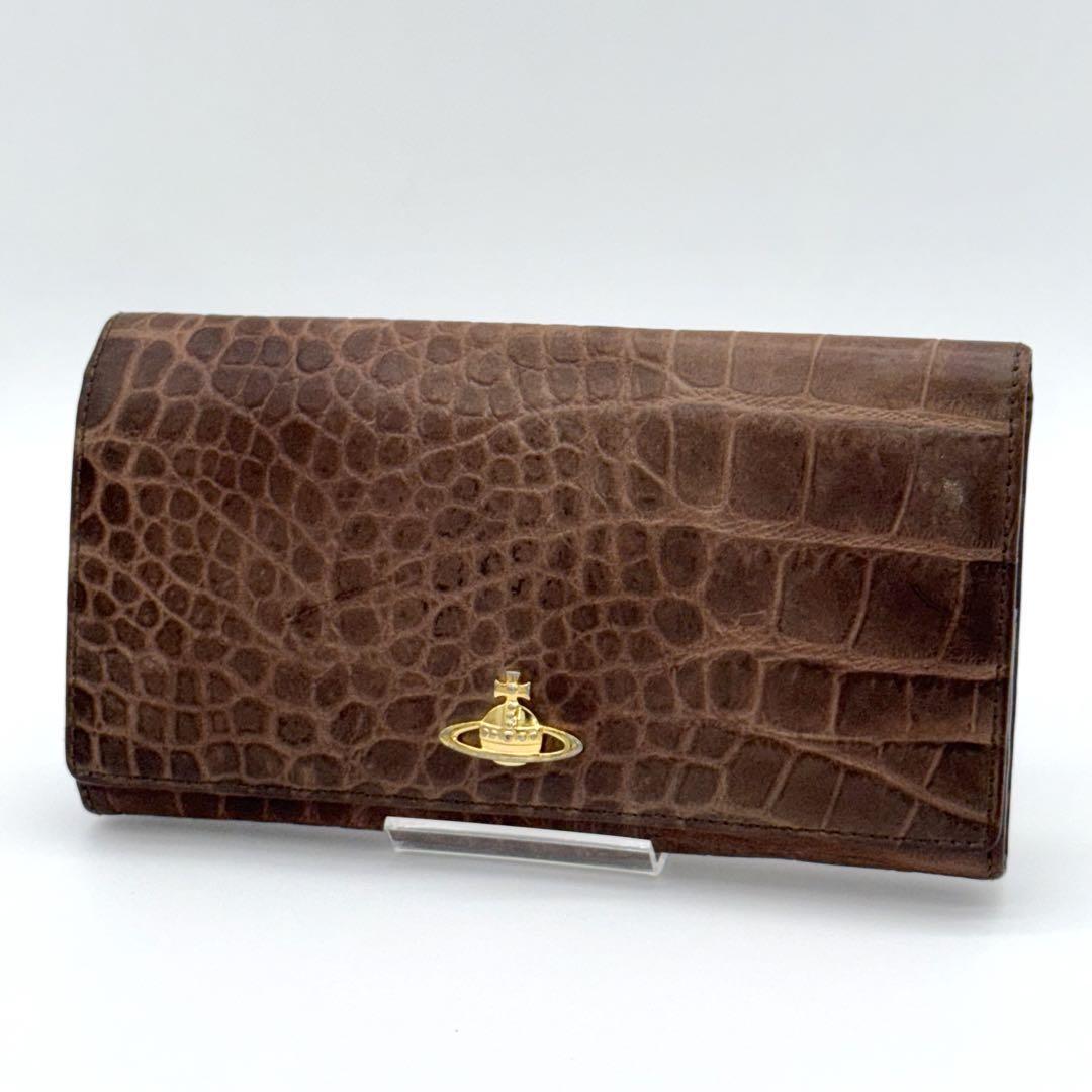 - 【良品】VivienneWestwood ヴィヴィアンウエストウッド クロコ型押し 長財布 ロングウォレット レザー レディース ブラウン BC000518