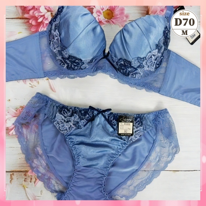 - Zd7017【D70】ブラショーツセット 脇高 谷間メイク マットサテン 青