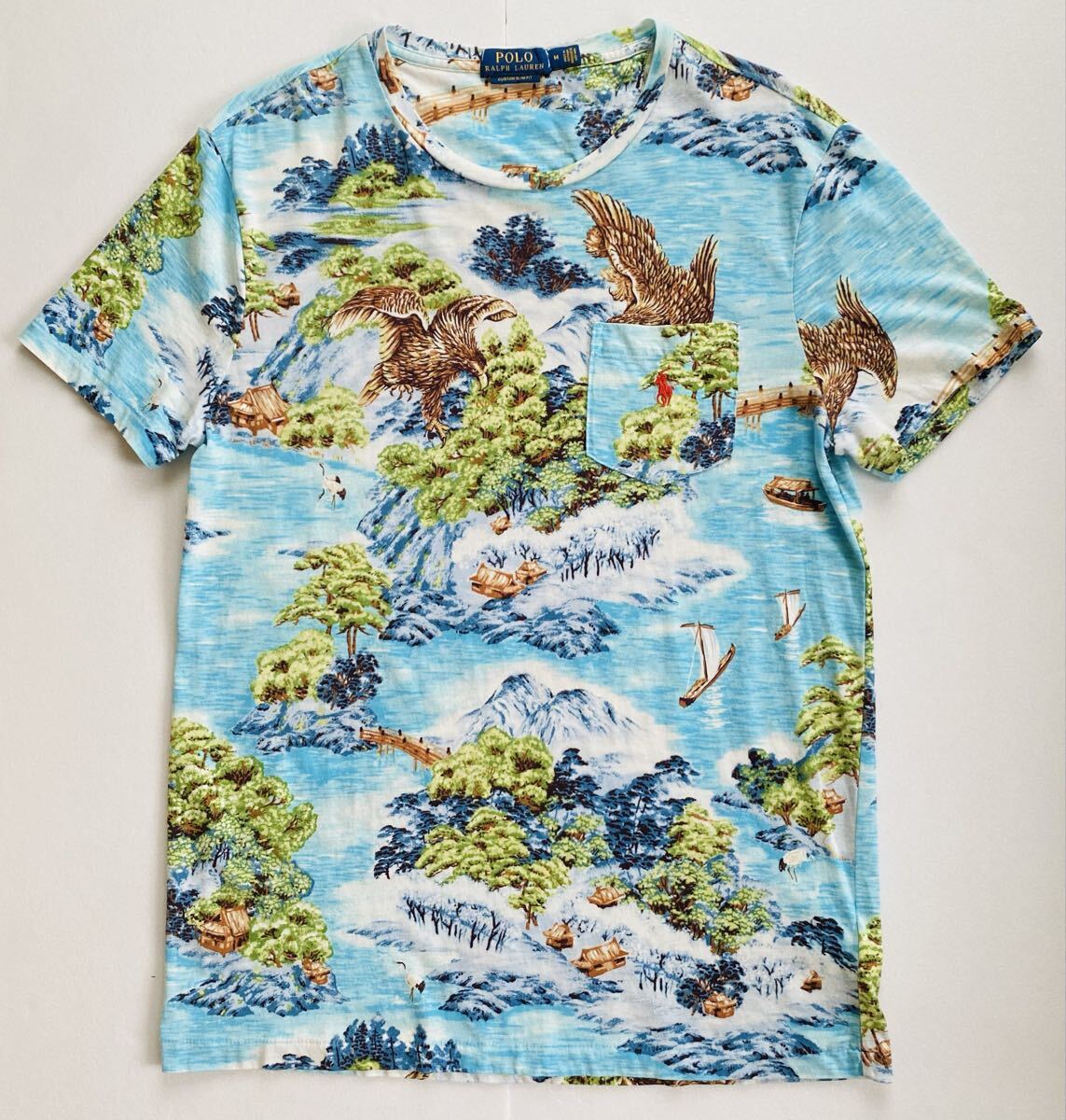 > Polo Ralph Lauren ポロラルフローレン 総柄 Tシャツ カットソー メンズ M 和柄 鷹 松