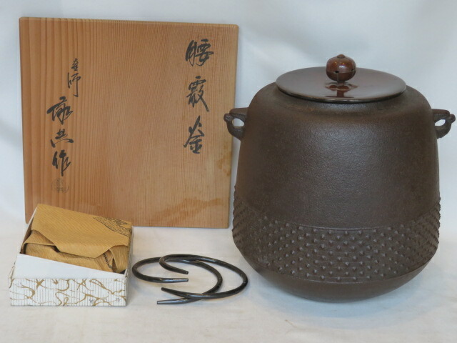 - (八月◆特売品)山形県 高橋敬典作 風炉用 腰霰地紋 尻張釜USED〈税込・送料込〉【中古・未使用】
