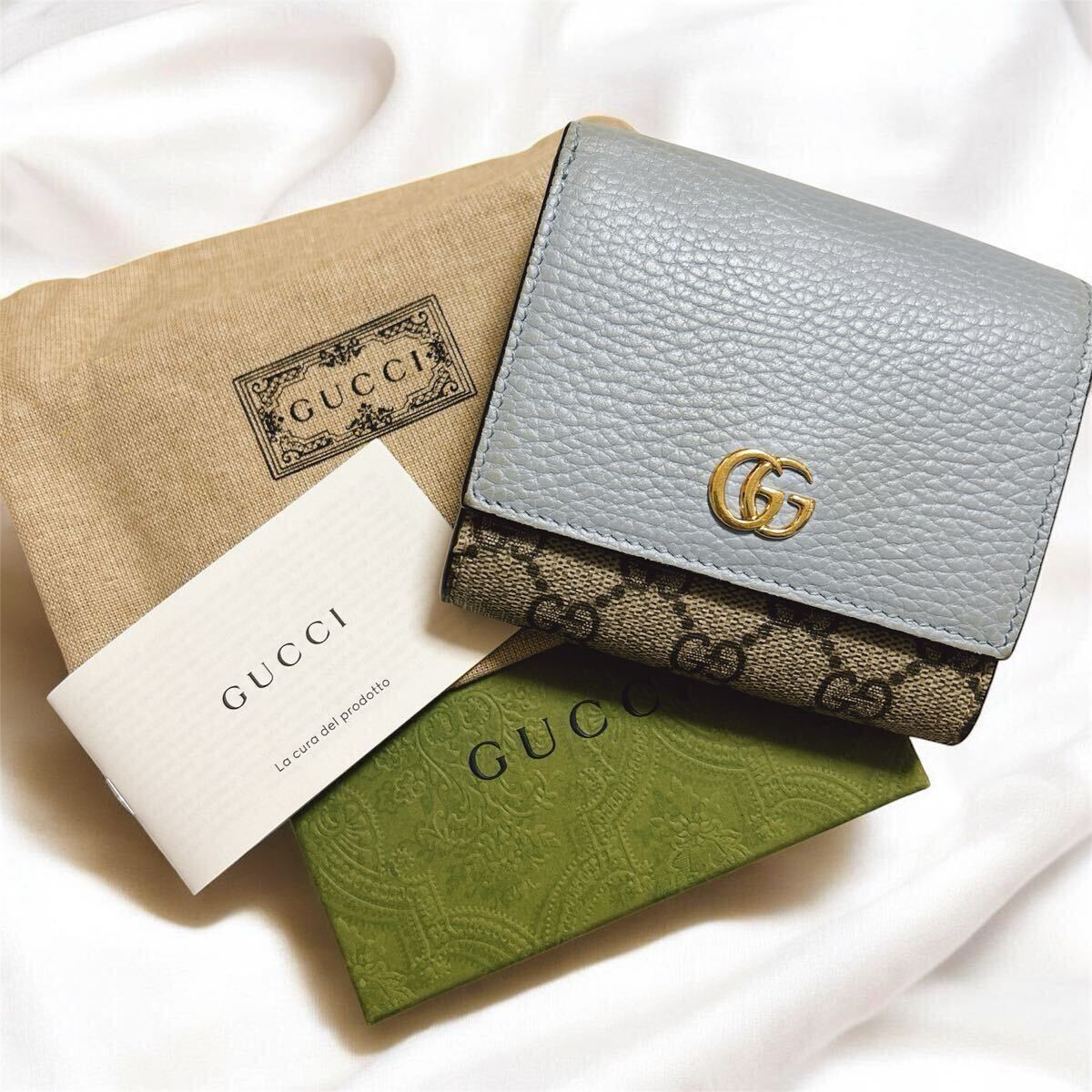 - グッチ 財布 二つ折り レディース GGマーモント ミディアムウォレット GUCCI ブルー系 GG柄 バイカラー
