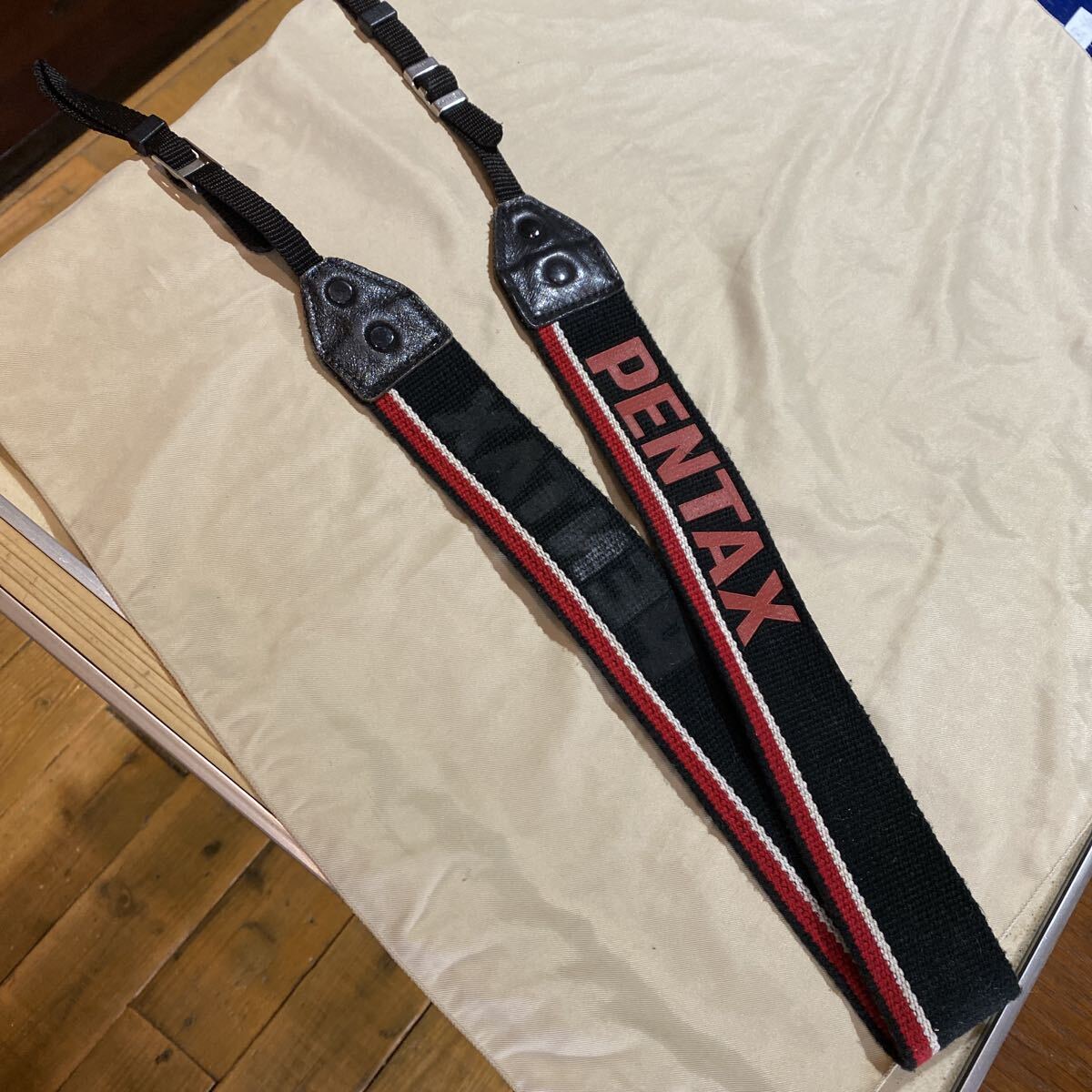 - PENTAX ストラップ カメラストラップ 本革×キャンバス 赤文字