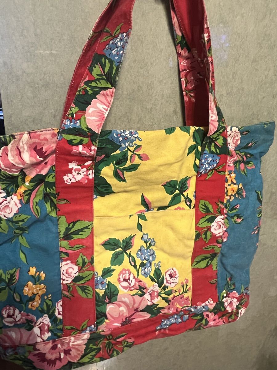 - キャンパス生地花柄トートバッグ キャンパス地マチ付トートバッグ ポーチ付バッグ カラフルフラワートートバッグ 花柄バッグ マザーバッグ