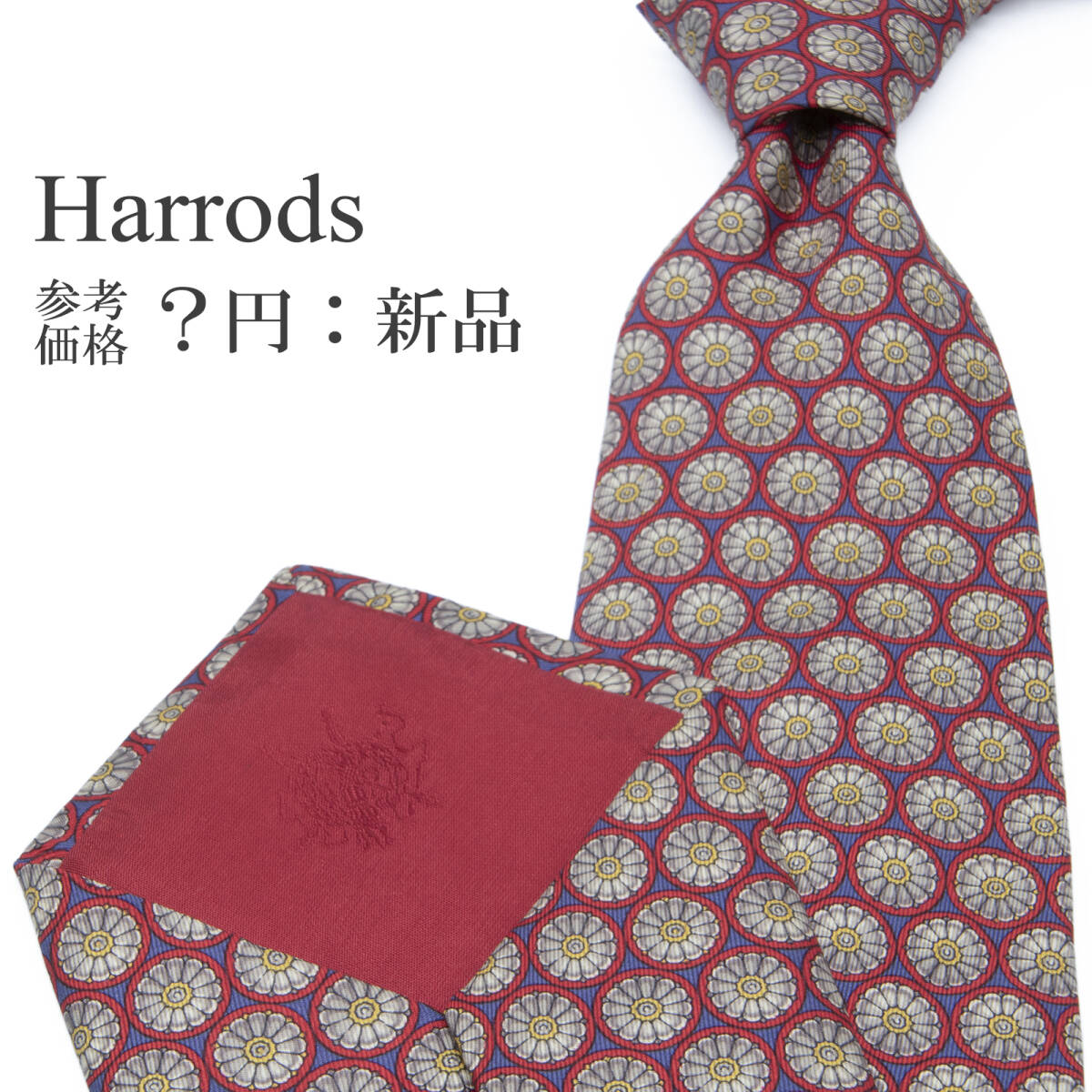 > 送料無料 ハロッズ ネクタイ 新品 シルク グレー 赤 レッド 青 ブルー 黄色 イエロー ビジネス 紋様 菊 ブランド イングランド製 綺麗 P220