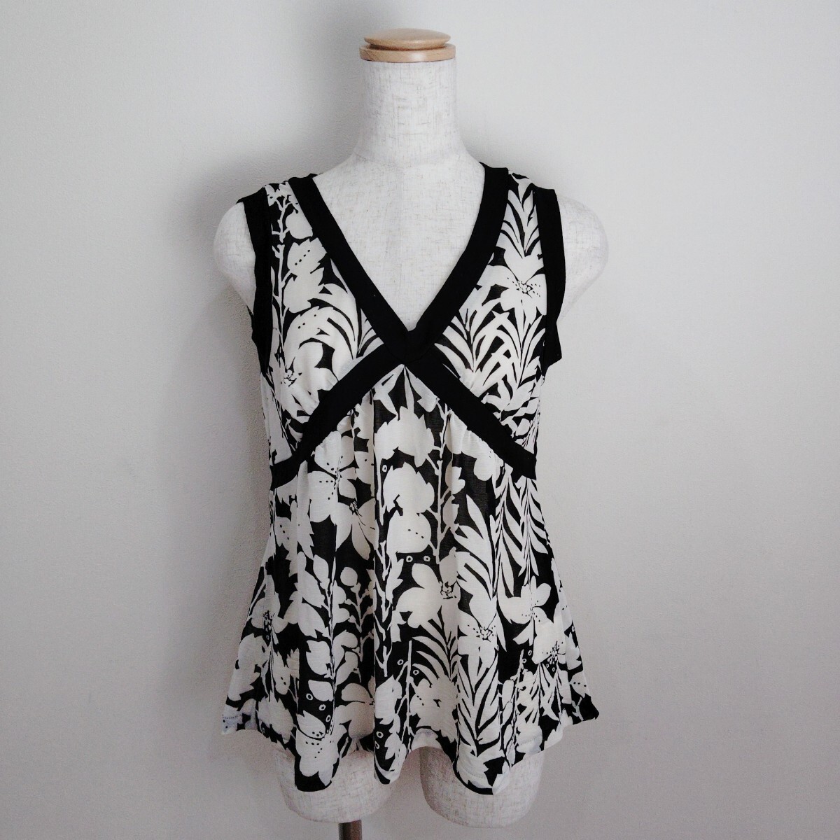- 0812/F/LAPIS BEAMS レディース ノースリーブ フレア 総柄 黒 白