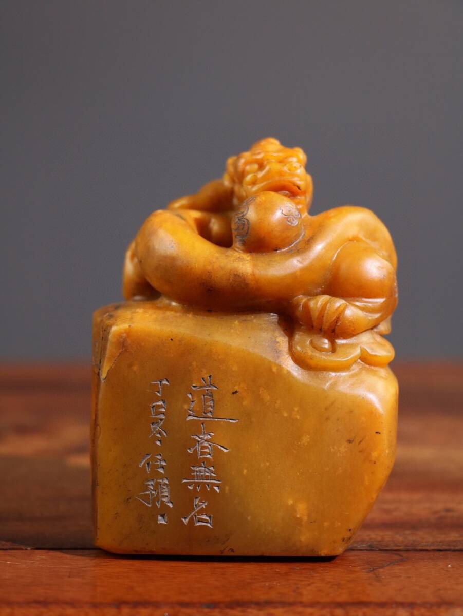 - 【超珍館蔵】寿山石 田黄石 細密彫 古龍印章 印章 印鑒 文房具 書道品 古賞物 古董品 古美術品 時代物 旧家蔵出 稀少珍蔵品