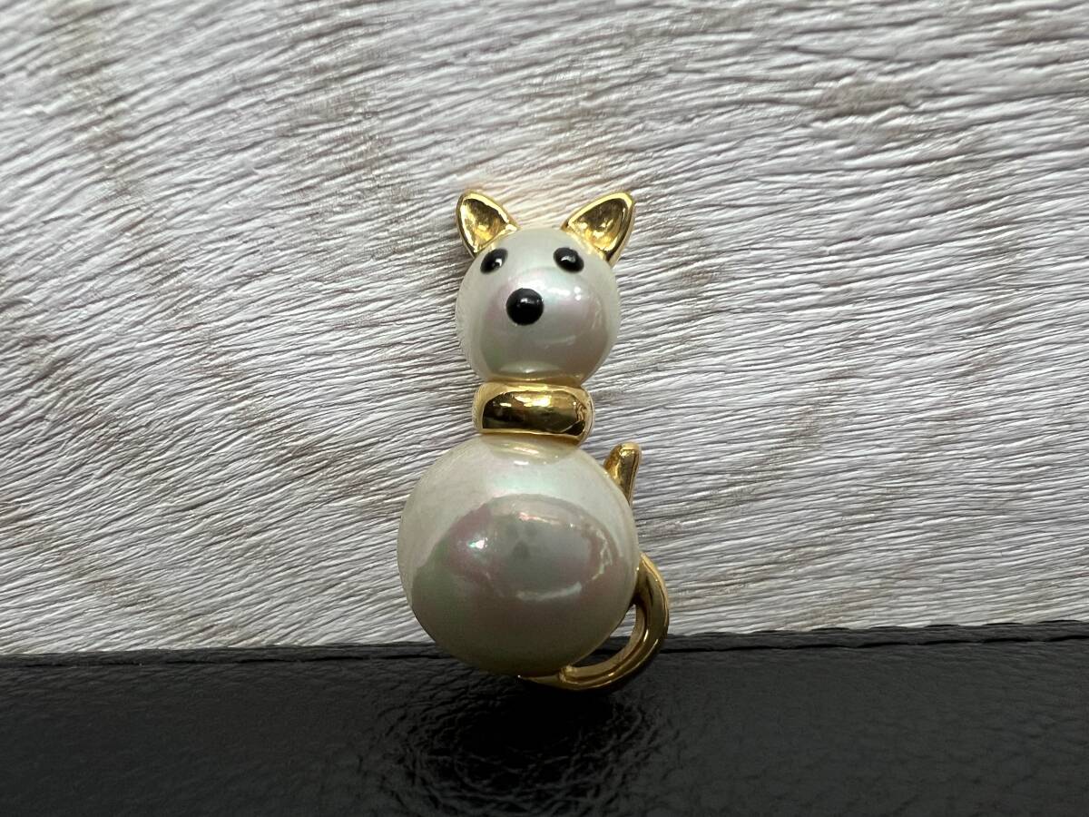 - 【美品】 キャロリー★ CAROLEE★ブローチ★フェイクパール★キャット