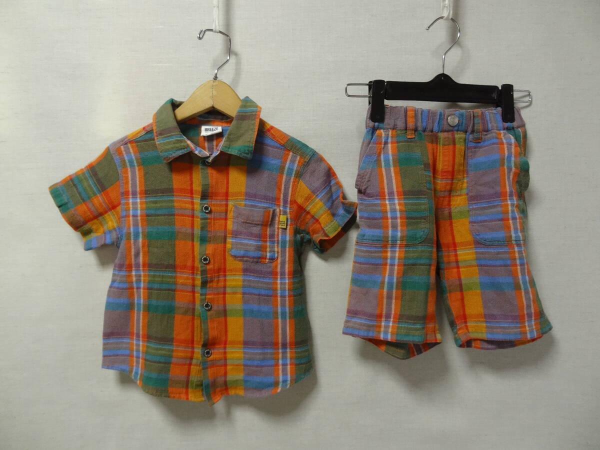 - 全国送料無料 ブリーズ BREEZE 子供服キッズ男の子 半袖 チェックシャツ 上下セット 120