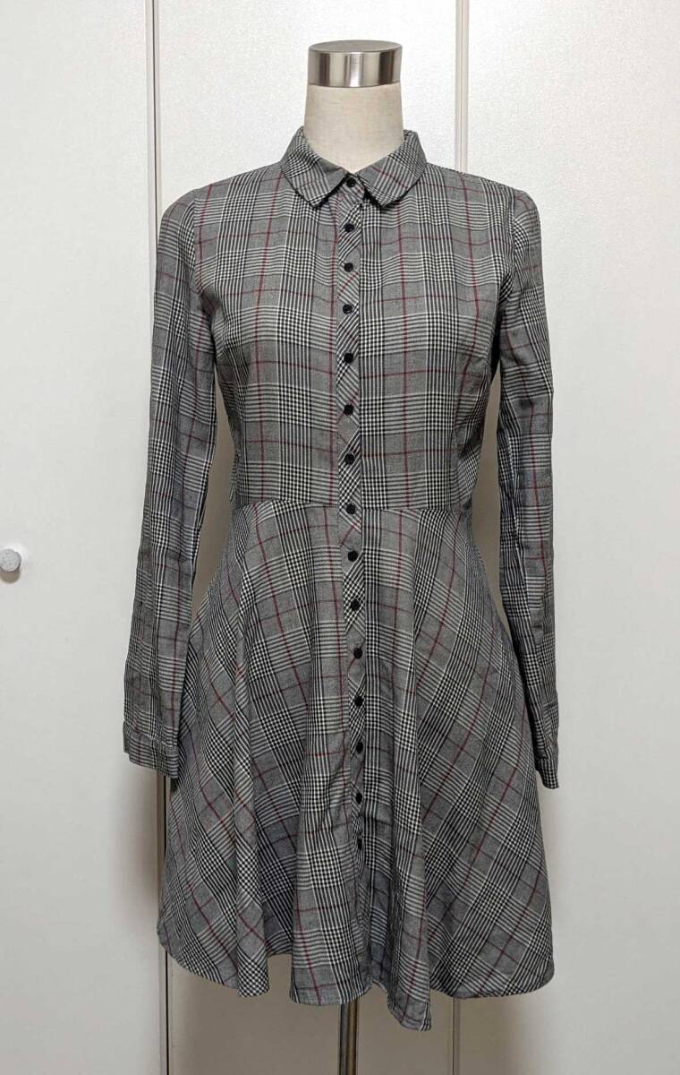 > ■no_108 ZARA WOMAN ザラ レディース ワンピース COTTON 綿 100% サイズ S チェック 黒赤 白 長袖 襟付き チュニック
