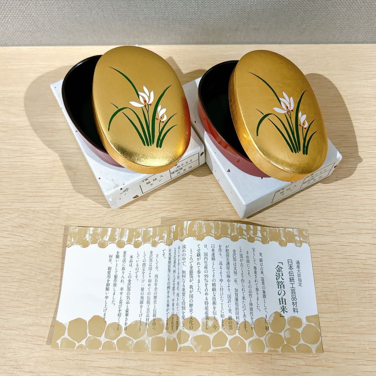 - ★【未使用】金沢箔 小判型小物入 小判楊枝入 ラン 金沢箔工芸品 幅8.7cm 2点セット