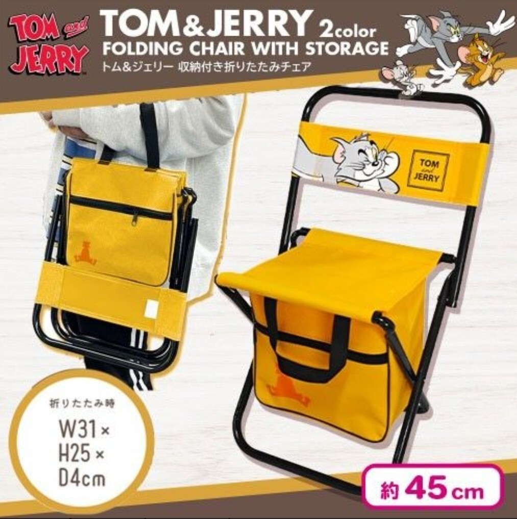 - トムとジェリー 収納付き折りたたみチェア 折りたたみ椅子 収納 トムの柄 ①