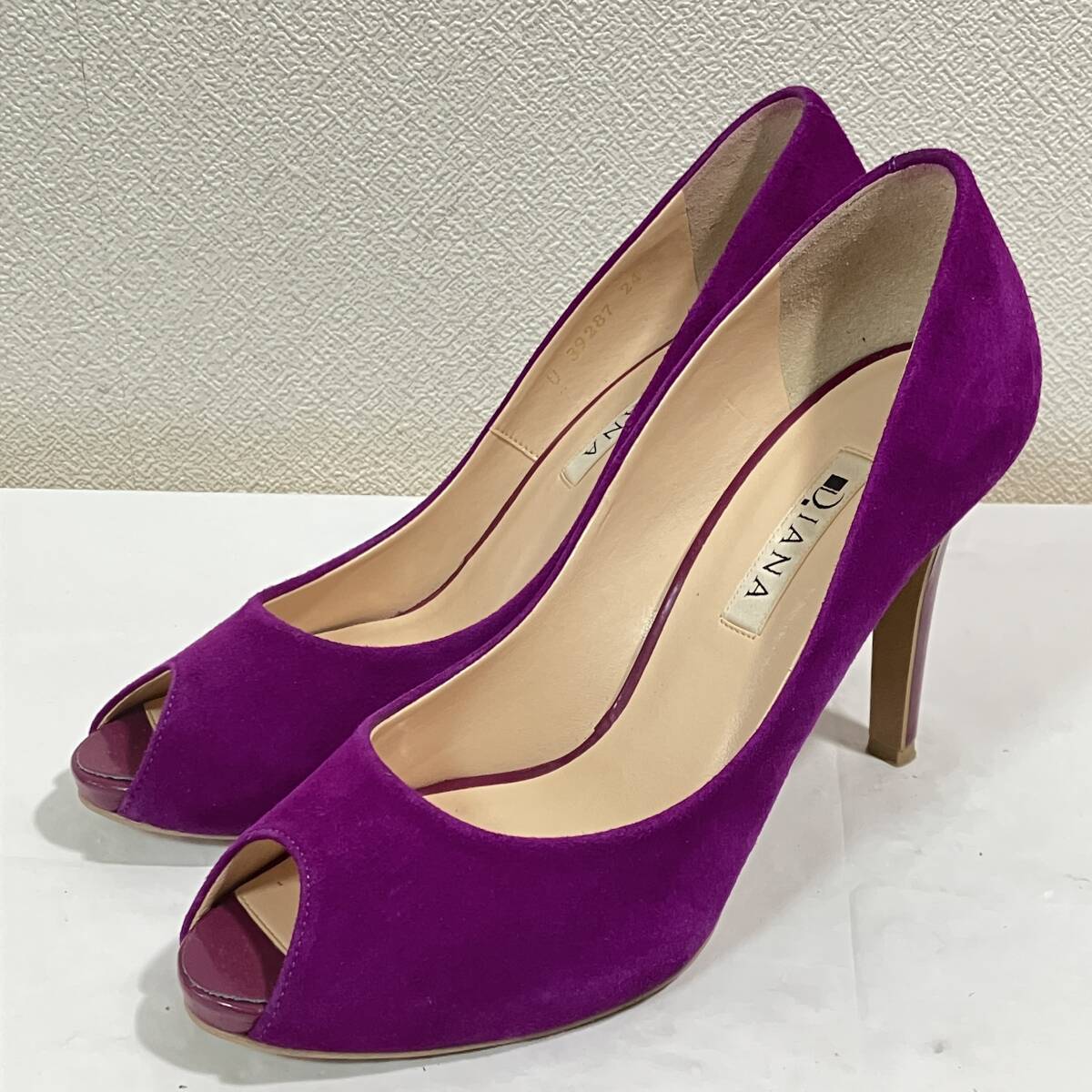 - DIANA ダイアナ スエード オープントゥ パンプス 24cm パープル レディース 靴