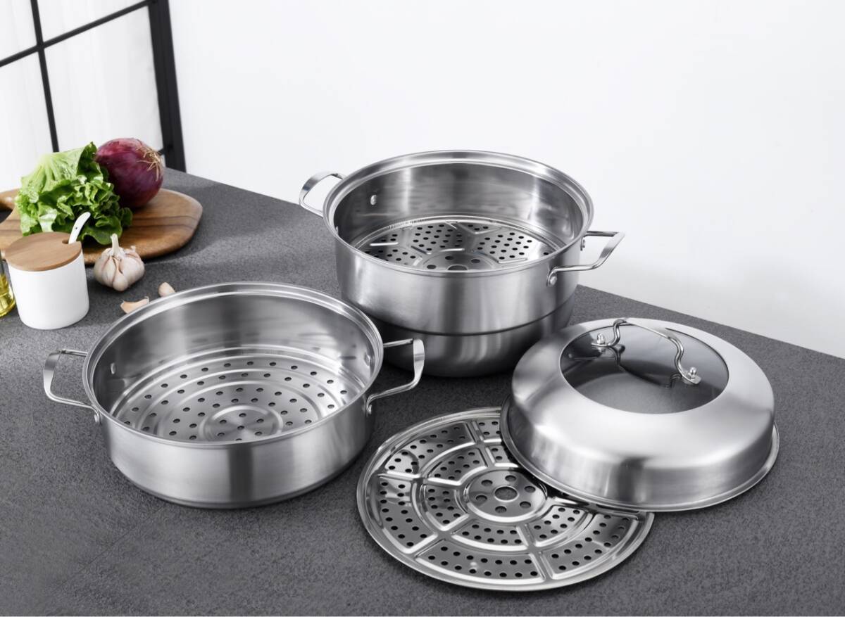 - 新品蒸し器三段30cm大容量 ステンレス せいろ蒸籠IH対応 ガス火対応 蒸し鍋 スチーム調理器 両手鍋 蓋付き ステンレス鍋 調理鍋 蒸し料理
