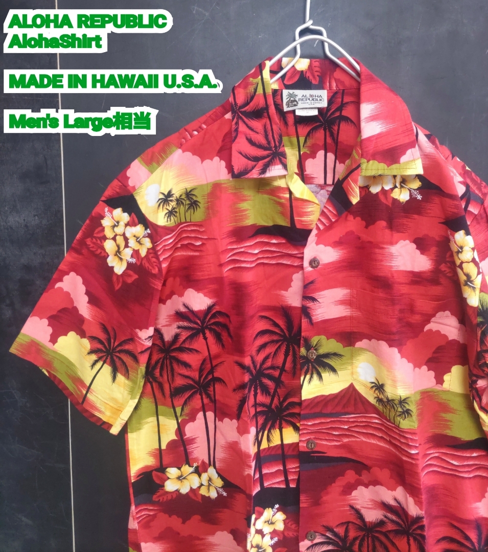 > ★送料無料★ US古着 ALOHA REPUBLIC アロハシャツ アロハリパブリック アロハシャツ ハワイ製 サンセットビーチ Large 相当