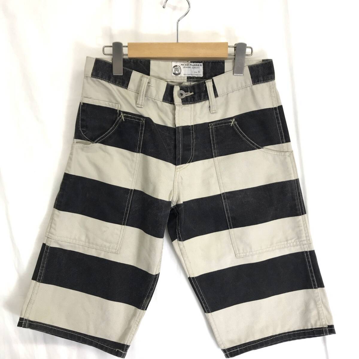 - KZ9081★ROAD RUNNER : プリズナー ハーフパンツ★S★ベージュ×ブラック ボーダー ショートパンツ