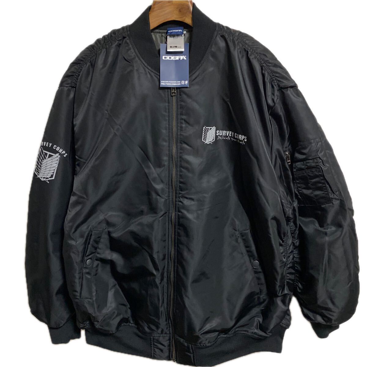 - [送料無料]COSPA/コスパ/進撃の巨人/調査兵団 MA-1ジャケット/中綿/ナイロン/ブラック/XLサイズ/未使用/タグ付き