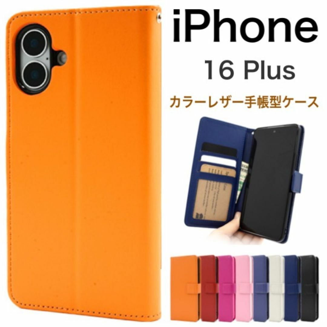 - iPhone 16 Plus用 カラーレザー手帳型ケース/アイフォン スマホケース