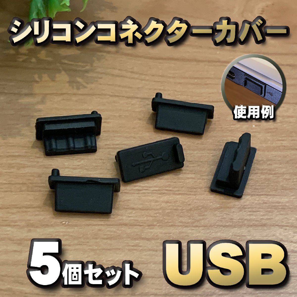> 【ブラック】シリコン USB 保護カバー コネクター 端子カバー キャップ x5個セット 汚れや誇りから端子を守ります